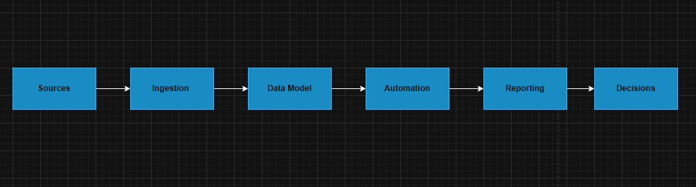 The focus of this work is on connecting business processes with data architecture in a way that supports automation, visibility, and measurable performance improvement.